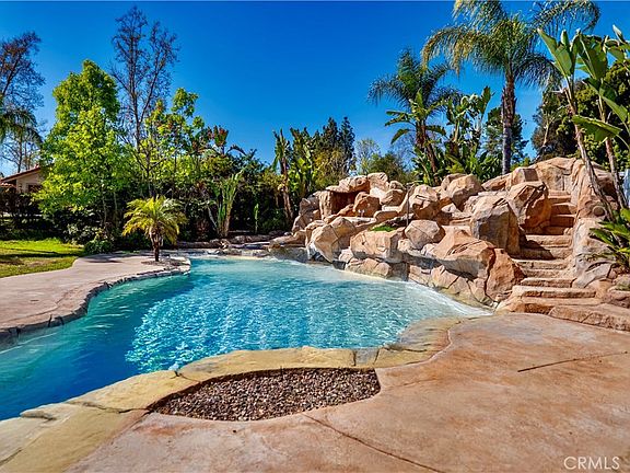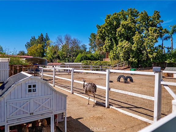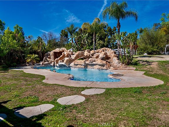 Enjoy a resort-style backyard with a large sparkling pool and cascading waterfalls, surrounded by lush landscaping and fruit trees - orange, lemon and peach! A covered patio with a view of the pool has barbecue grill, oven, small fridge and sink perfect for parties. There's plenty of space for RV parking, outdoor entertaining and even a small animal farm-- perfect for those who enjoy a rural touch while staying close to city amenities.