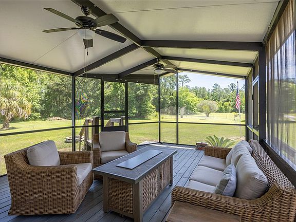 Enjoy peaceful country living in this spacious, 4-bedroom, 3-bathroom, move in ready home, boasting 2,704 square feet, and situated on 5.04 private acres. With no HOA! This home is perfect for large families, or multi generation families. A large screened in porch at the front entrance offers a tranquil space to lounge and welcomes you into the home. Inside, you'll be greeted by a warm and inviting interior, featuring an open-concept layout, high ceilings, and plenty of spaces to relax and unwind. A generously sized living room with a cozy wood-burning fireplace flows seamlessly into the kitchen and dining area, perfect for gatherings or entertaining with friends and family. The open kitchen is designed for convenience, featuring abundant cabinet space, beautiful granite counter tops, granite back splash, a large island with a bar, stainless steel appliances, and a pantry. A separate dining area, with vinyl plank flooring, can accommodate a table for up to eight. Your personal sanctuary awaits in the sun filled, spacious, primary bedroom featuring a large walk-in closet, and a private office with access to the fully screened in back porch. The suite also has a spacious, upgraded, spa-like en-suite bathroom, complete with a garden tub, walk-in shower, granite counter tops and double sinks. This well-designed split floor plan features three inviting guest bedrooms on the opposite side of the home, ensuring privacy. One of the bedrooms, separate from the others, has an attached full bathroom that is also accessible to guests. Two other bedrooms share a private bathroom and are separated by a flex space that would be an ideal playroom, media room, second living area or in-law suite. There is a convenient side entrance that provides access to a mudroom with a washer, dryer, cabinets, and utility sink. Sliding doors off the dining area lead to a huge back porch with a BBQ cooking area, rubber coated flooring, and hot tub offering an ideal outdoor relaxation space. The property includes a detached 2-car garage and a covered metal carport, giving you plenty of space for projects, storage for a boat, or utility vehicle. You can get your workout in with your very own air-conditioned, rubber-floored, private gym located at the back of the garage. A whole house Generac generator provides peace of mind. There are also 2 RV hookups. Part of the property has electric and water hook up offering a great space to build an ADU or workshop. The partially wooded lot provides plenty of room for a mini farm, outdoor activities, or simply enjoying the tranquility of nature. There is a fenced area with lots of pasture for horses and a chicken coop that is ready for your chickens. NEW HVAC installed in 2024. NEW Hot Water Heater 2025. Located in northwest Gainesville, this home is only 15 minutes from Alachua and 20 minutes from both downtown Gainesville and downtown Newberry. Don’t miss your chance to make this haven your own—schedule a showing today!