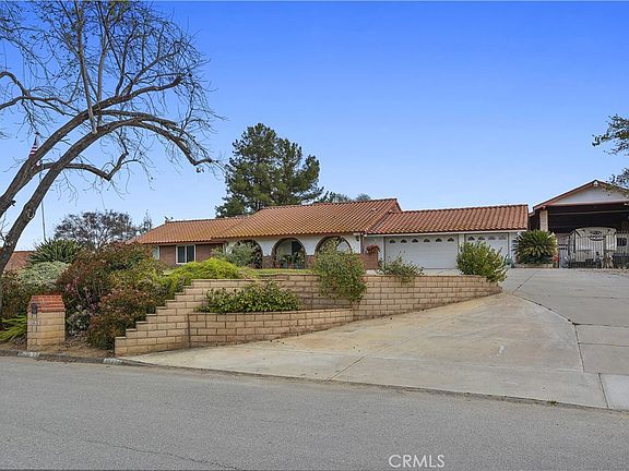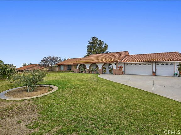 Woodcrest Oasis: A Sprawling Ranch with Endless Possibilities. Proud to present this captivating single-story ranch home, a sanctuary nestled on a mature tree-lined street in the heart of Woodcrest. This exceptional property offers the perfect blend of indoor and outdoor living, ideal for those seeking a spacious retreat with endless possibilities. Step inside and discover a welcoming floor plan featuring a formal living room and dining area with an open concept design. A dual-view fireplace creates a warm and inviting ambiance, perfect for cozy evenings. The large hallway boasts beautiful tile flooring, while plush carpets provide comfort in the bedrooms. A Haven for Entertaining. This 4-bedroom, 2-bathroom layout offers ample space for families or those who love to host. French doors lead from the living area to a covered patio, creating a seamless flow for indoor-outdoor entertaining. Unwind in your sparkling pool after a long day, or tinker on your latest project in the fully covered and gated RV parking area, complete with a dedicated storage shed or workshop space. The sprawling 39,640 sq ft lot boasts mature landscaping, featuring 4 fruit trees, 2 nut trees, and a flourishing landscape, a haven for nature lovers with a green thumb. A spacious 3 car Garage/workshop with Ample Storage a large cement driveway, providing ample parking for all your vehicles, toys, boat, or RV. Embrace a more sustainable lifestyle with a solar panel system that helps keep your energy bills low. The property also features a 3,000-gallon well with dual pressure tanks, perfect for maintaining lush landscaping without breaking the bank on your water bill.