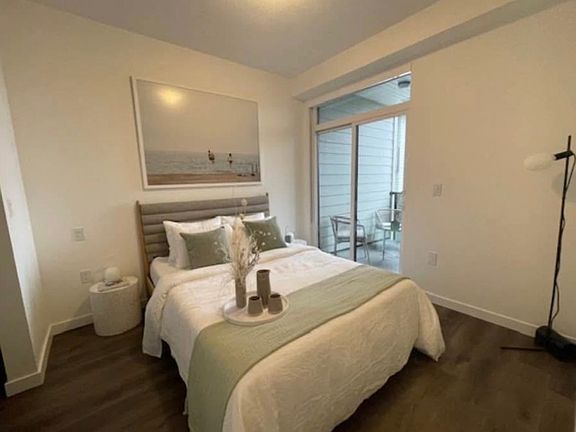 Step into luxury at The Grove. Plan B is a spacious 772 sq. ft. with 2 bedrooms, 2 washroom(s) and Den.The unit faces north side with a patio yard. Enjoy the timeless elegance of the generous ceiling heights and bright & large picture windows. It further boasts quartz counter tops, full-size Samsung appliances, including a 32" 3-Door Refrigerator. The Grove has amazing amenities that include Residents only Fitness Studio, Social Lounge and Kitchen, Guest Suite, Outdoor Amenity Area, and On Site Building Management. Parking and storage are also available, and you can rent what you need! A small pet may be considered with Landlord Approval and Pet Deposit. Entire building is non-smoking/vaping. Tenant insurance is mandatory. $2150 Per Month.