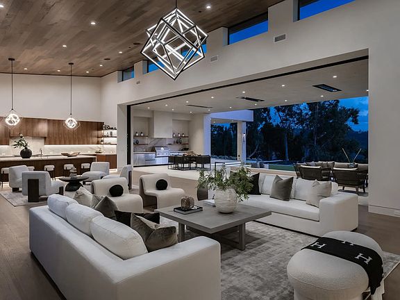 Brand-New Construction 2024 offers grand scale living with elegant proportions on 3.35-acres with unparalleled design and located on the sought after west side of RSF Covenant! Scale & Style to a level for impeccable living and amazing year-round indoor-outdoor luxury. 5-star resort-like living showcasing approx. 8,900+SF of ideal One-Level living, clean lines and grand spaces with 5 ensuite bedrooms, 6 car garage and full Detached 1-Bdrm Guest House overlooking scenic VIEWS tucked behind private gates on one of the most coveted streets in Rancho Santa Fe Covenant! An architectural triumph estate (on Solar) including zero-edge infinity pool w/ full pool bathroom, formal dining and home office both looking out to beautiful courtyard infinity pond, wine cellar, state-of-the-art systems including motorized lift doors, Control4 Smart House technology, detailed security system, custom lighting and multiple outdoor lounging areas including a sunken firepit that all provide for easy and luxe open-air enjoyment. The open chef's kitchen is built with Wolf appliances, oversized island, high-end cabinetry and wet bar. A secondary back kitchen is designed for ease of catering/prep. The primary suite with a fireplace features stunning views overlooking the pool, Views, His/her closets, large shower and stunning stone soaking tub. An incredible one-of-a-kind oasis with complete privacy and comfort, this sophisticated estate presents a truly elevated lifestyle experience.