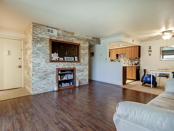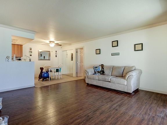 Newly remodeled and paint! Real wood floors make a perfect look around the house, and the living room showcases a stone wall. The large patio balcony makes you say, ''I'm actually gonna use this.'' There is even a small bonus room just off of the living room to use for an office, workout space, or any way as you like! The kitchen is a WOW with stainless steel appliances and backsplash/ceiling accent that makes a statement. Have you ever been giddy over a washer/dryer combo? You will with these brand new beauts! Has a community pool!