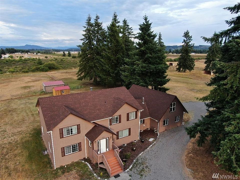 Bring your horses and livestock and live the good life in this over 4000 sqft well maintained home encompassing 5 acres. 3 beds+multiple bonus rooms, 3.25 baths, masters-both levels. Huge kitchen w/abundant counter space, views of Mt. Rainier and 700 sqft deck. Newer upgrades to include carpet on lower level, interior/exterior paint, ADA accessible lower level, 560 sqft bonus over garage, new heat pump, tankless WH, 30yr comp roof, finished shop/craft room off laundry and garage. Welcome home!