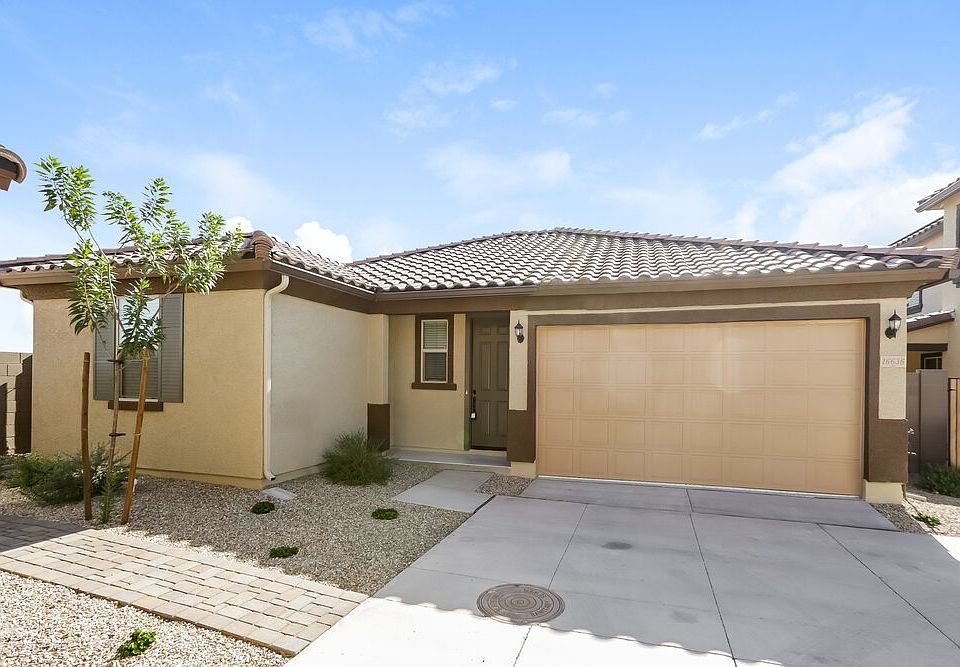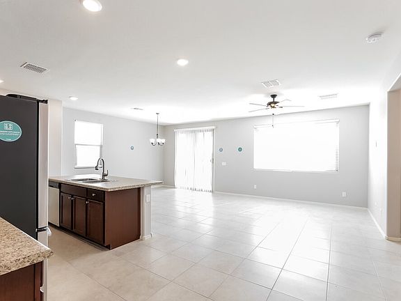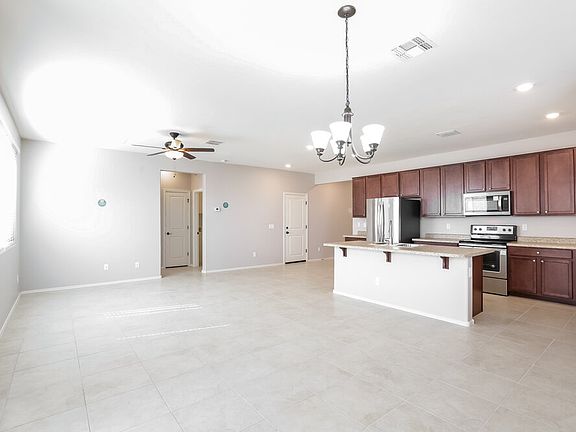 This stylish Surprise, AZ, renovated rental home features three bedrooms and two bedrooms in an open floor layout. Walk through the foyer and into the living room and enjoy the cool tile flooring and comfortable ceiling fan. The modern kitchen features stainless steel appliances and a large kitchen island with enough room for bar stool seating. The welcoming master suite offers plush carpeting, a ceiling fan, and a spacious walk-in closet. The en suite master bathroom offers dual-vanity sinks and a walk-in shower. Enjoy the beauty and simplicity of desert living with the covered patio in the fenced-in backyard. Call soon to schedule an appointment to view this gorgeous home.