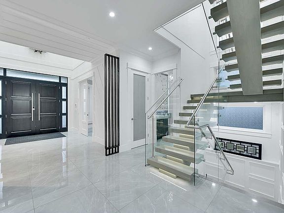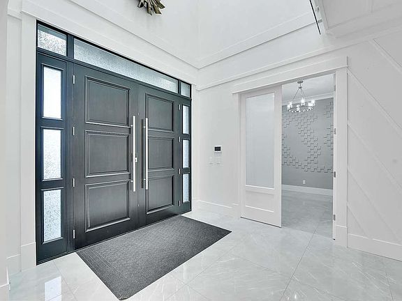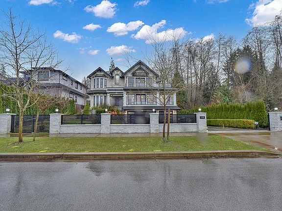 This exceptional, world-class, contemporary gated mansion is a masterpiece of custom design situated in South Surrey, built with top-tier materials, unparalleled craftsmanship, and meticulous attention to detail. Spanning over 5,800 square feet, it occupies the finest lot in all of April Creek. Highlights include a covered patio complete with a gas fireplace and sound system, a fully insulated three-car garage, two master suites with vaulted ceilings, 10-foot high ceilings, a bar for entertaining, a formal media room, a yoga studio, a European-designed two-way glass fireplace, premium Sub-Zero and Fulgor appliances, a butler's pantry with a wine cooler/tower, and luxurious hardwood flooring throughout. Surrounded by greenbelt on both sides, it offers unparalleled privacy and tranquility.
