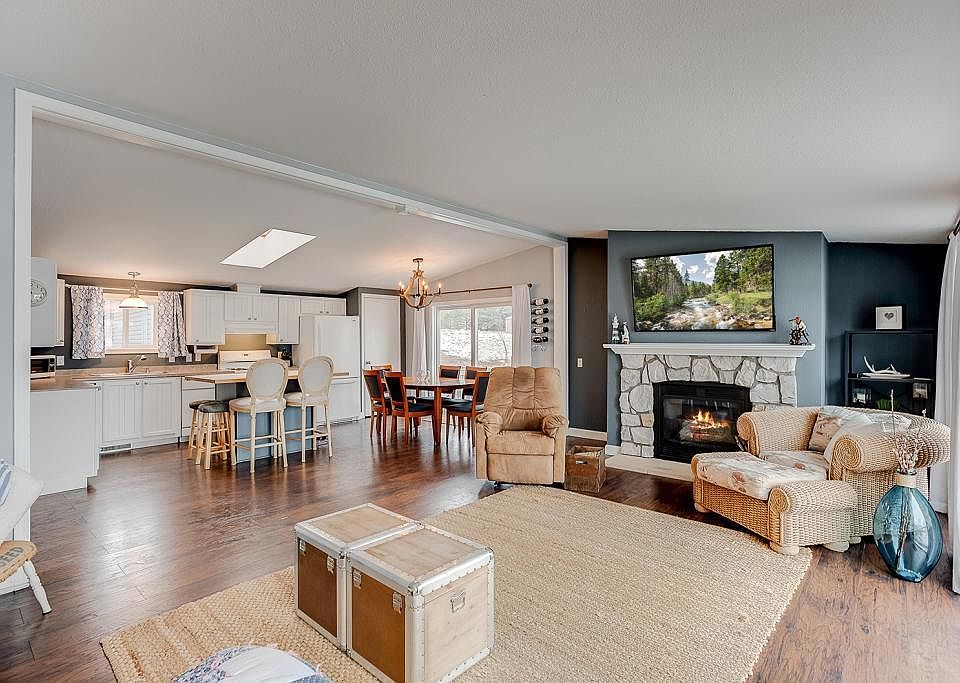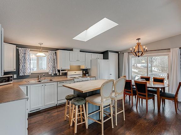 Updated and uber clean open concept design. Panoramic views of Long lake with massive wrap around deck,perfect for entertaining. New flooring comes with 30 year warranty and pops next to white enamel trim work & cabinetry. Check out the beach themed flooring in the bathroom. Tilt windows -easy clean. 130 feet of shoreline, bunk house for extra storage, oversize garage on a quiet dead end street. One of the best homes on the lake!