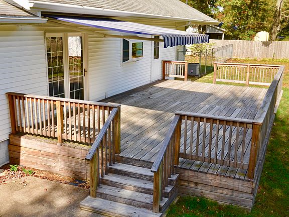 Wonderful Contemporary Ranch on 5 Acres! This home features cathedral ceilings with a large open living room & dining area along with central air. It has an attached over-sized garage with a double door & can easily fit 3 cars inside.There is a beautiful large deck in the back yard & also features a volleyball court!Other wonderful qualities this home has: there are private trails through the woods, a raspberry patch, 2 large sheds, & a fenced area for animals & gardening. There is alsoa large gate to move a trailer or a 5th wheel/camper into the backyard. This home was doubled in size in 2004 so even though the original home was built in 1947, it is now effectively considered a newer home based on the additions & the remodeling. Seller will pay for the cost to hook up to city water at closing.