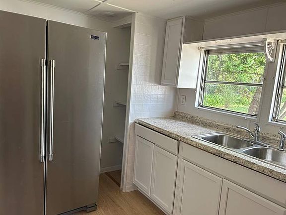 This newly renovated 2/1 is located in a quiet cul de sac. The interior and exterior have been freshly painted. Additional updated include a new water heater, sub floor and new laminate flooring. The stackable washer and dryer are conveniently located inside the home. You can enjoy the beautiful Florida weather on your screened lanai or on the covered patio in the private back yard. The home is located in Palm Ridge a wonderful 55+, golf cart friendly, community in Leesburg, FL with beautiful mature landscape and trees. The amenities are plentiful and include a beautifully newly remodeled clubhouse, a heated pool with spa, shuffleboard courts, a dog park and more. The homes sites are very generous, which gives you some room between you and your neighbors. We are also in the process of gating the community. Palm Ridge is centrally located and there are so many things to do in close proximity to the community. Lake Griffin, part of the Harris Chain of Lakes is very close and there is a public boat ramp about 2 miles down the road. We are near The Villages (at a much lower price). There are also several quaint downtown areas such as Mt. Dora, Tavares (America's Sea plane capital) and of course Leesburg where you can also find shopping, dining and lots of festivals, fairs and other activities. Like being outside? There are Springs galore, and hiking and biking areas nearby. If you want to hit the big city Orlando is only about an hour away. It has it all! At this price this home won't last long. Make an appointment to view it before it's gone.