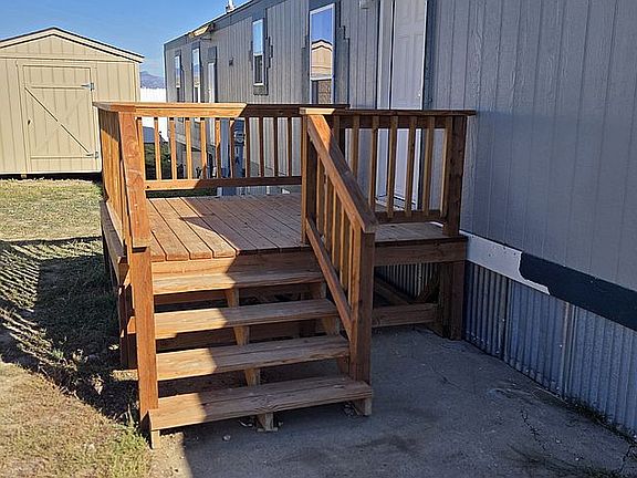 Year 1998 16x80 3 bedroom 2 bathroom mobile home. Has a new 8x8 deck, all new water lines and new tankless water heater. Newer gas appliances, Air conditioning. Insulated Skirting and steel Skirting. 10x12 shed call IronClad Modular Home Park LLC for a showing today. Lot rent is $570.00 plus water usage 970 824 5345