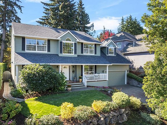 Delightful Cooper Mountain Home With Timeless Charm! Enjoy The Northern View While Relaxing On The Classic Wood Ceiling Front Porch. Perched Well Above Street Level, Abundant Natural Light Streams Into The Two-Story Foyer. Designer Features Including Wainscotting, Shiplap Accent Wall & Polished Wood Countertop Set This Home Apart. The Living Room Is Perfect As a Private Office With Double Sided Gas Fireplace To Set The Main Floor Ambience. The Dining Room Flows Through The Butlers Pantry To The Open Kitchen. Fall In Love With The Great Room Layout That Opens To a Flat Backyard & Flagstone Patio With The Ability To See All The Outdoor Happenings Through The Wall Of Windows Across The Back Of The Home. You'll Enjoy Every Season In The Gorgeous Fenced Yard With Ultimate Privacy & Lush Landscaping. The Magnificent View Is Captured From The Primary Suite With a Newly Updated Bathroom, Including Double Sinks, Quartz Counters, Large Step-In Shower, Soaking Tub & Tile Floor. There's Room For Everyone With 3 Additional Upstairs Bedrooms & Hall Bathroom With Double Sinks. Additional Features That Wow Are The Big Bonus Room With Skylights & Wood Floor + The Extra Deep 24x32 Garage That's Ideal For Hobbies & Storage. Truly a Must See Home Within Mountainside High School Boundaries!