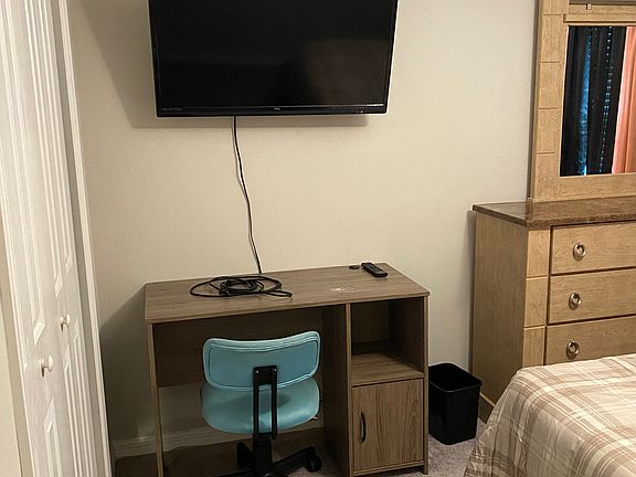 Private room is carpeted and fully furnished on the second floor. It comes with a bed, dresser, desk, chair, televison, mini refrigerator and microwave. Access to private bathroom in the hall. Washer and dryer access on site and is located upstairs as well. The downstairs has tile flooring. Lease will be for 1 year. Security deposit will be equal to one months rent. All utility cost are included in the rent price. No pets allowed.