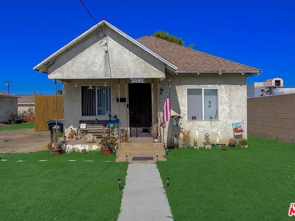 ATTENTION INVESTORS and PARAMOUNT HOMEBUYERS! Cute, 2 BR / 1 BA on a large lot with mature trees and lots of green turf! Currently tenant occupied, charming home has a welcoming front porch that leads to a sunny living area with built-in mantle-style media are and appealing crown moldings and baseboards. There is a galley style kitchen that connect to a dining area and a big window view of the backyard. Two large bedrooms hug a Jack N Jill bathroom with a shower over tub design. There is also an indoor laundry and utility area, too. The big, grassy backyard offers plenty of place to play, practice ones green thumb, BBQ and more. There is also a detached garage. Bring your HGTV renovation plans as there is plenty of opportunity here! Please do not disturb tenants!