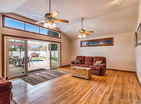 Sprawling Ranch style pool home on a quiet tree lined street. Expanded and updated, this charming 4 bedroom character home features hardwood floors throughout, vaulted wood beamed ceilings, open and spacious layout on an oversized lot. Two fireplaces â one in the original master bedroom suite and the other in the knotty pine paneled living room. Full sized dining room off the kitchen. Roomy kitchen with wood cabinets and stainless steel appliances including stove, microwave, dishwasher and refrigerator. Large indoor laundry room with storage. Family room opens to the expansive backyard with a fabulous sparkling grey bottom pool & spa, gas fire pit, covered patio, new fencing, avocado tree, grassy area and dog run. Triple pane windows, 200 amp electrical, insulated. Oversized 2 car attached garage plus additional parking in driveway with room for an RV or boat. Minutes to shopping, restaurants, excellent schools and Petit Park.