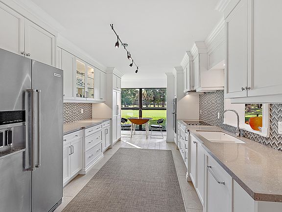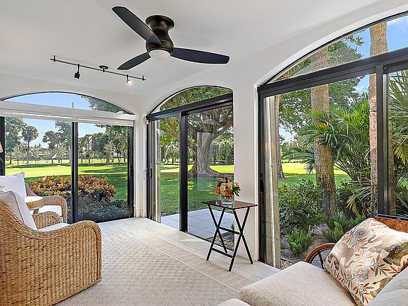 Recently updated kitchenEnclosed sunroomQuartz countertopsSerene golf course viewsSweeping golf course viewsBrand-new custom built-in cabinetFull laundry room