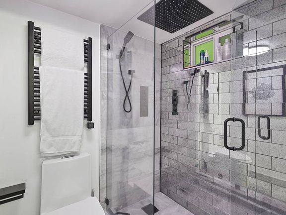 - Luxurious touches: digital fireplace, smart towel warmer, and 48" modern grey ceramic tiles throughout.