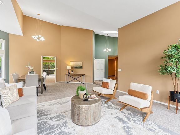 Enjoy the ease of one-level living in this thoughtfully designed home located in West Linn’s Carriage Meadows neighborhood. Inside, vaulted ceilings and skylights provide abundant natural light throughout the main living areas. The spacious living and dining rooms offer an open layout that flows easily into the kitchen, which features an island with gas cooktop, built-in oven, breakfast nook, and plenty of cabinet space. The primary suite includes a walk-in closet, dual sinks, a soaking tub, and a separate shower. Two additional bedrooms provide flexibility for guests, a home office, or hobbies. A full laundry room with utility sink adds convenience. Step outside to a large deck with views of a quiet, three-acre protected wetland. The backyard also includes mature landscaping, a lawn area, and a covered gazebo—ideal for relaxing or entertaining. The home features cedar siding, central A/C, and an attached two-car garage with extra storage. Located on a private drive, this property offers both privacy and access to nearby parks, schools, and shopping.