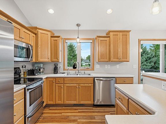 Inside, the open, flowing layout features generous room sizes, walk-in closets, a private owner’s suite, and a versatile bonus room in the finished lower level. Step outside to enjoy the expansive maintenance free deck and fully fenced backyard with a wood privacy fence ideal for relaxing or entertaining. Conveniently located near schools with quick access to Highway 14 and I-35, this home delivers both practicality and lasting value.