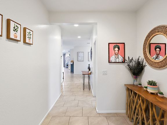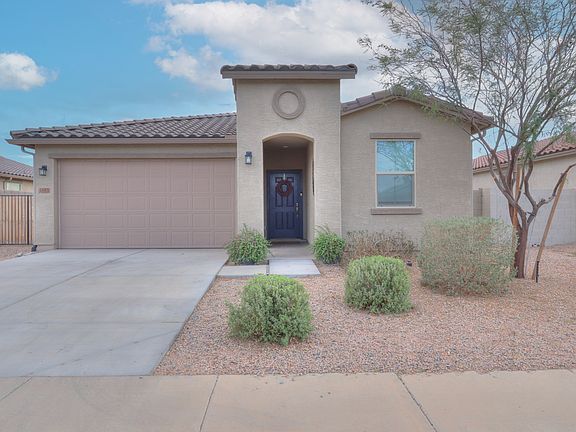 This charming 1,896 sqft ranch-style home features 3 spacious bedrooms and 2 full bathrooms, all set on a generous 7,150 sqft lot. The heart of the home is the stunning kitchen, seamlessly open to the great room, offering a large kitchen island and a private dining nook. The kitchen boasts numerous upgrades, including rich dark oak cabinetry, a striking tile backsplash, Pendleton lighting, stainless steel appliances, elegant granite countertops, and a convenient pantry. Throughout the home, you'll find a harmonious blend of tile and recessed lighting, with plush carpeting in the bedrooms. The dreamy primary suite offers a peaceful retreat with ultimate privacy, featuring a luxurious walk-in shower, a relaxing soaking bathtub, a dual-sink vanity, a private toilet, and an expansive walk-in closet. Step outside to your ample backyard, perfect for entertaining or relaxing, with a covered patio and thoughtful landscaping, including rocks, pavers, and low-maintenance turf. Offers a prime location with convenient access to major roadways and nearby amenities. Just minutes from I-10, residents can easily reach shopping centers, dining options, and schools. Enjoy the tranquility of suburban living while being close to everything you need for daily convenience. Whether you're heading to work, running errands, or enjoying outdoor activities, this location provides the perfect balance of comfort and accessibility.