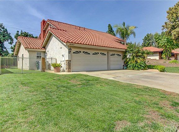 Beautiful 5 bedroom 4 bath, 2 story home in Upland. This 2603 sqft home includes 2 spacious master bedrooms. The downstairs master is perfect for guests or extended family with separate bathroom with a private redwood patio deck. The upstairs master will be a quite oasis for you at the end of the day to relax by your fireplace. A second fireplace is located in the Family room. The kitchen and bathrooms have been remodeled as well as updated outside landscaping. With a 3 car garage with workshop area, laundry room and pool /spal, this home is exactly what you need. Entertain guests in the backyard or at the breakfast bar. This home has everything you need to make it the perfect home for you. Its move in ready.