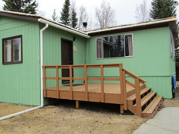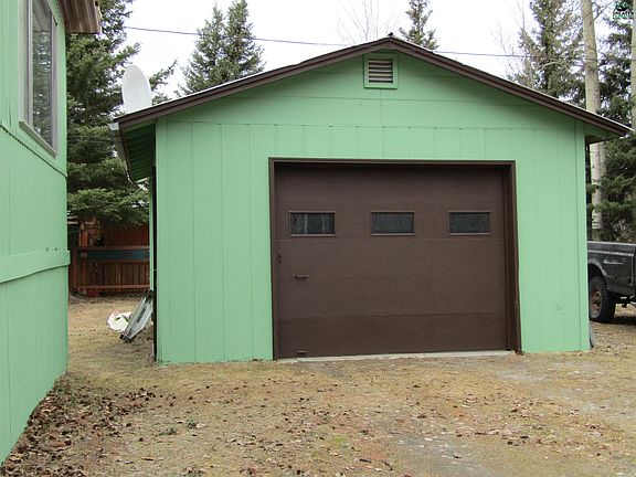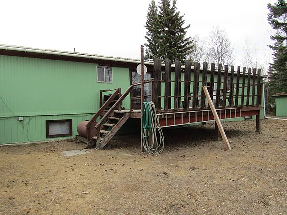 Great location! Walking distance to City Park and ballfields, schools, grocery, post office and banks. 1974 mobile home on a permanent insulated concrete foundation. Full unfinished basement and arctic entry. Being sold as is. Seller will make no repairs. New front deck. Back deck needs replaced. Roof is sprayed foam. 3 bedrooms/2 bath plus office. Master bedroom has large closet and bath with shower. Newer forced air furnace, wood stove and Toyo stove in basement. Detached garage. All exteriors newly painted. Many pluses but not bank financeable. No owner finance.