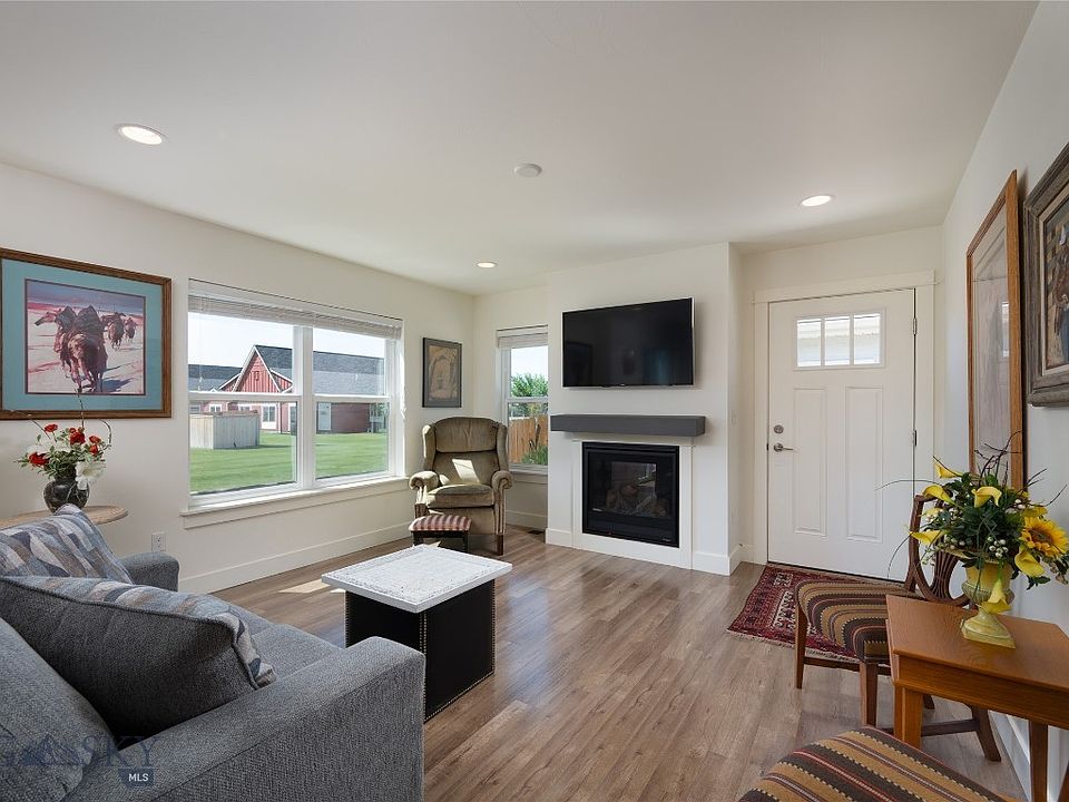This thoughtfully maintained, lightly lived-in single-level condo lives with the privacy and comfort of a standalone home while offering the ease of low-maintenance living -- all with a $5,000.00 Seller to Buyer credit toward closing costs &/or interest rate buy down! Designed in a contemporary duplex style, the residence features a functional open floor plan filled with natural light. With two spacious bedrooms and two full bathrooms, the home also includes an attached private garage and a partially fenced backyard—a rare combination that enhances privacy and everyday convenience. Inside, you’ll find quality finishes throughout, including solid surface, tile, and carpet flooring, stainless steel appliances with a gas range, and a cozy gas fireplace that anchors the living room. Perfectly positioned in Bozeman, the property offers direct access to a wealth of outdoor pursuits and community amenities. Just moments from the city’s 100-Acre Regional Park, residents can enjoy scenic trails, an off-leash dog park, unique playgrounds, climbing boulders, a sledding hill, and even a seasonal pond. Offering the feel of a single-family residence with the benefits of low-maintenance condo ownership, this home blends privacy, comfort, and an unbeatable location in the heart of Bozeman’s active lifestyle.