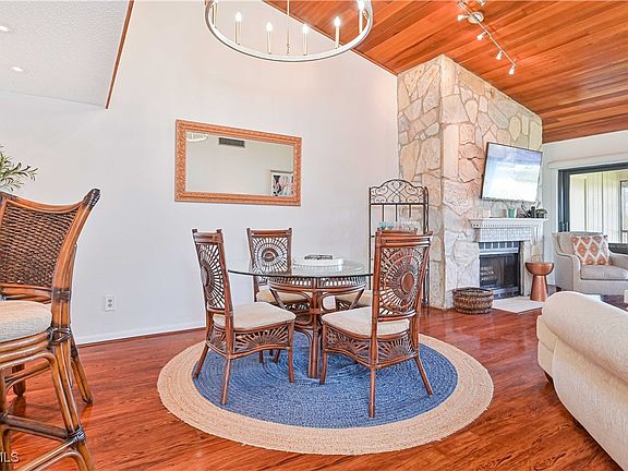 The open floor plan features a stunning fireplace and high cathedral ceiling with custom wooden ceiling, extending to the screened in balcony. Fully equipped kitchen complete with a coffee bar. The corner balcony allows a nice breeze and offers a peaceful lake and golf course view, perfect for enjoying a steaming cup from the coffee bar or cool refresher! Spacious primary suite with double sinks and shower in the bathroom. Guest bedroom features a two-seater desk, reading nook, workspace - whatever you need. Assigned parking. Wi-Fi included. Beach chairs and umbrella provided for your day at the beach! The Forest in Fort Myers is a peaceful, well-maintained neighborhood known for its beautiful trees and abundant birdlife. Residents love the quiet, safe environment and the walkability of the area, with sidewalks perfect for leisurely strolls. Optional purchase of monthly membership for The Forest Country Club. Country Club amenities include a clubhouse & restaurant, Six Har-Tru Hydro clay courts with three lighted courts for nighttime play, Pickleball, Bocce and Fitness. The Forest is home to two Award Winning walkable courses named best of Gulfshore Life for seven consecutive years, with two distinctly different courses keeping golfers of any skill level challenged. The Bear and Bobcat courses will test and enthuse you from the moment you tee off. Membership pricing for a 'Two Month Preview Term' is $4000, Family Golf Preview Members (ages 54 & above) Individual Golf Preview Members 80%, see listing picture. Note: one of the courses is currently being renovated, and completion is expected end 2025.