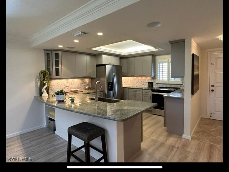 Completely remodeled 1st floor 2 BR 2 BA condo located in the beautiful Gated Community of The Forest in South Fort Myers. Stainless steel appliances with tons of counter space and cabinet storage. The unit includes impact glass, vinyl wood plank flooring, soft close cabinets, stainless steel appliances, granite counter tops and more. Relax on the lanai with picturesque views of pond and golf course. The community pool is steps away. Each unit has 1 assigned parking space and guest parking in front of unit. Convenient to beaches, airport, restaurants and shopping centers. This is a no smoking unit. Owner pays water. Renter pays electric. First and last month's rent required at signing. No smoking unit