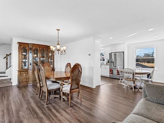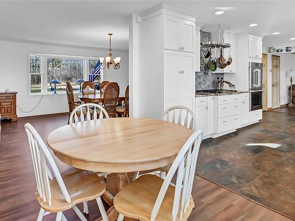 A home in the country! Five bedroom colonial on 4+ acres . The enclosed front porch is an ideal place to welcome guests and show-off your seasonal mums, poinsettias, and exotics. Just inside, a combined living room/dining room provides great entertaining possibilities. Fabluous kitchen, remodeled 2021, offers everything for the gourmet chef in your household: stainless appliances, 5-burner gas stove with pot-rack and pot-filler faucet, farm house sink, double oven, microwave with convection cooking, plenty of granite counter space and soft-close cabinets for storage. Kitchen opens to a cozy family room with wood-burner surrounded by newer built-ins and mantle. Enormous, glassed-in 4-season room overlooks the expansive deck. 5-bedrooms up with wood flooring, master with private bath, upstairs laundry and 2 bonus rooms . The basement rec room opens to a walk-out stairway to the rear property. The yard is a gardeners dream: green house, raised beds, fruit trees, grape vines and berries. Plus, water feature and shed. The cleared, level property would make a perfect site to build a barn and raise livestock. Horse-boarding at neighboring properties. 3-car garage with workshop area. So many updates to this winning home: converted from electric to natural gas heat, 2 furnaces and AC [2022], water softener [2022] recessed LED lighting on first floor, WIFI-connected programmable thermostat, newer solid-core doors on the first floor. Great value for this slice of heaven!