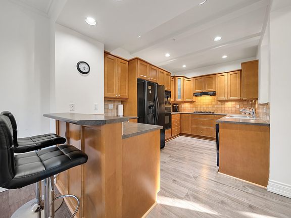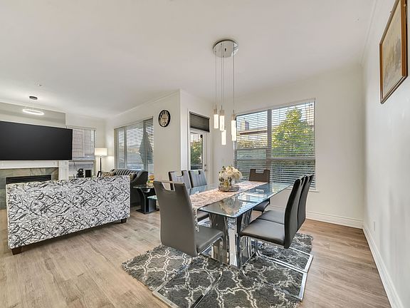 Air-conditioned end-unit townhouseElegant livingBright open-concept main floorLarge windowsCozy gas fireplaceSpacious dining areaSunny deck