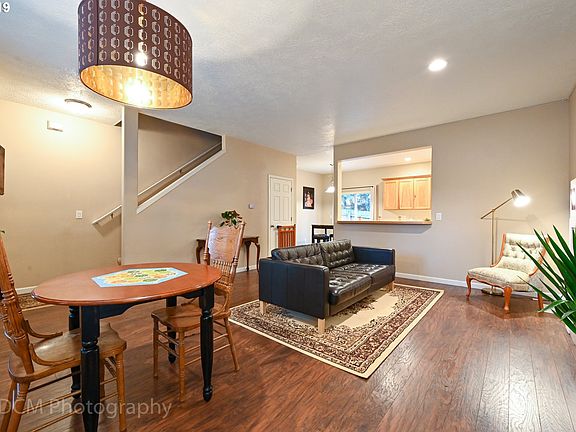 Come home to your own oasis among the trees! Functional design in the kitchen and dining areas. 3 beds + 2 baths upstairs and a 1/2 bath + 1 bonus bedroom (quaint den? crafting area?) on the main. A spacious living room + A/C + gas fireplace + double garage + back patio made for BBQ. Positioned away from the street at the far end of a private flag lot. It's an out of this world home at a down to earth price!