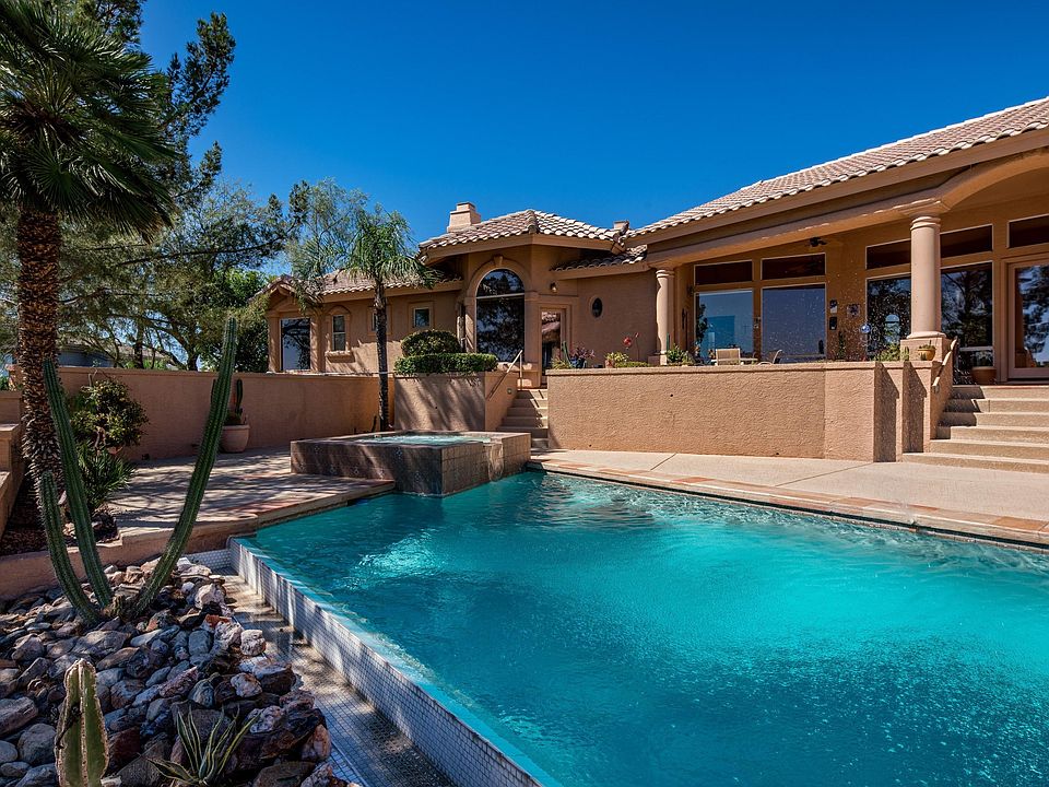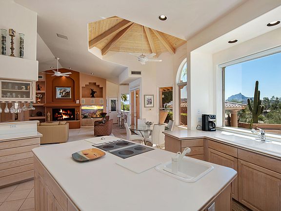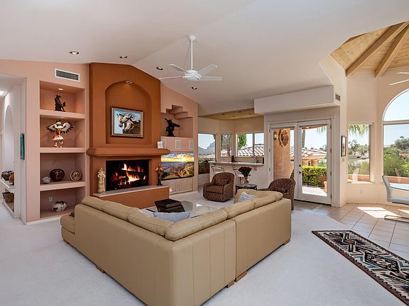 This lady defies her age beautifully! You won't find a better update project than this icon of Fountain Hills homes, now priced to afford a proper update! Big mountain views just a short walk to downtown Fountain Hills! Pristinely maintained, impeccably designed and built, this timeless open concept home is akin to finding a Picasso amid a pile of imitations! Designed by its Owners for a lifetime of uses, the single-level architecture offers ''great bones.'' Enjoy wide vistas of mountain ranges from multiple patios that easily handle a large crowd, or just intimate evenings for two. The interior caters to hospitality and convenience, with a large sunny Kitchen, Nook & Great Room that features a 750 bottle wine room, full bar & fireplace. Check out the Video & Supplement for details! Iconic Fountain Hills Custom "The Hawk's Nest" Enjoy fun features like the infinity edge pool, 8-person spa, a firepit and a Pool Gazebo that houses an outdoor grilling center and pool bath. HOSPITALITY PLUS! Great Room features a massive, sunny kitchen that places the cook at the center of it all. Living Areas are all open to patios, big views and outdoor activities A Full Bar and 760 bottle chilled Wine Room with grape leaf motif stained glass created by John Amato. A crowd pleaser Kitchen, with large island, two cooking areas, two sinks, multiple seating areas and wide-open views! Split floorplan provides guest privacy and outdoor access from all suites. Single Level Living means everyone can join in the fun! Built-in cabinetry and lighted niches throughout for life's treasures! The front gallery offers options for formal dining, living room, music room or a game area. A fireplace graces one wall while two lit, Saguaro shaped niches flank either side. BRIGHT AND OPEN CHEF'S KTICHEN Sunny Breakfast Nook features a dramatic wood beamed ceiling Bar seating for a crowd Large center island kitchen is designed for multiple participants: Two cooking areas with JennAir systems; a total of 6 burners plus a griddle Two Whirlpool wall ovens Two sinks for convenient food prep 48" KithenAid Refrigerator Trash Compactor & Recycling Center Custom slide outs at lower cabinets; pressure opens on drawers and doors Large walk-in pantry with room for a second refrigerator CUSTOM BUILT OFFICE Custom Built Office features Saguaro ribbed desk, wet bar, private bath. Knotty Alder Sante Fe style double door entry Double doors open to a Zen-like courtyard retreat & water feature GRACIOUS BEDROOM SUITES Spacious master suite features a gas fireplace, sitting area, and convenience bar. Custom-built, remote control television cabinet is included Master Bath is Truly a His & Hers Affaire: Two sink and vanity areas Two generous walk-in closets with elegant customized shelving & storage Two private commodes Jetted garden tub Large walk-in steam shower with seating Nice touches like a three-sided mirror, full mirrors at vanities, sunny windows Second guest master suite each features large walk-in closet, walk-in shower, jetted tub and private entrance. Additional suite is created of 2 rooms for easy flex space. One with a cedar closet! PRIVATE RESORT STYLE BACKYARD Seamless indoor-outdoor living from the massive covered patios Pool Gazebo features a 6-person bar, outdoor kitchen with a built-in grill and refrigerator and pool bath with a fun Pueblo motif tile created by Muriel Flood. Enjoy a gas heated infinity edge pool and 8-person elevated spa with spillway. AquaLink provides full system control from inside the home. View oriented gas Fire Pit and bench seating for a crowd make this the perfect home for a large family or entertaining. HIGH QUALITY FEATURES Laundry Room features loads of cabinetry, large sink, closet & iron board. Washer and Dryer Included Semicircular driveway and a dramatic custom milled 8 ft Oak door featuring stained glass by John Amato. 3 Interior Fireplaces plus an outdoor Firepit Powder Room. Water Sof