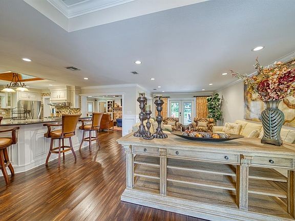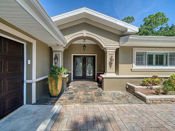 This magnificent Sherwood Manor home is well appointed with 4 bedrooms, 3.5 baths and an oversized 2 car garage. As you step through the double lead-glass doors, the spacious and inviting floor plan beckons you to explore the outdoor paradise beyond. The custom chef's kitchen is a culinary masterpiece, boasting double ovens, a generous island with a wine fridge, dual sink areas, luxurious granite countertops, and sleek soft-close cabinets, making cooking and entertaining an absolute delight. The cozy family room is a sanctuary of comfort, adorned with a recessed ceiling, a captivating wood-burning fireplace, built-in cabinets, and a state-of-the-art BOSE surround sound system. Retreating to the self-contained primary suite is an indulgent experience, with tray ceilings, french doors leading to the serene courtyard, and a dedicated 2 Ton AC and electric panel await. The primary bath epitomizes luxury, featuring a freestanding soaker tub, a separate shower, and an artfully crafted double vanity. The guest rooms are equally spacious and filled with natural light, with the main guest room offering the added convenience of an en-suite bathroom with a shower. The home boasts a total of 7.5 Tons across its three AC systems, ensuring a consistently cool and comfortable environment. The expansive outdoor courtyard is a haven of tranquility and seclusion, a charming Gazebo complete with a bar, water supply, and electricity. With over 3/4 acre of open space, this property is an entertainer's paradise and a true escape into nature's embrace. There is a detached office/guest house offering a well-appointed kitchenette, and powder bath. Centrally located to award-winning white sand beaches, including the nearby Dunedin with its breathtaking Honeymoon and Caladesi islands. Explore the vibrant downtown areas of St. Pete and Tampa International, each just a short drive away. Discover the unparalleled charm and beauty of this truly one-of-a-kind gem, designed for those who appreciate the extraordinary.