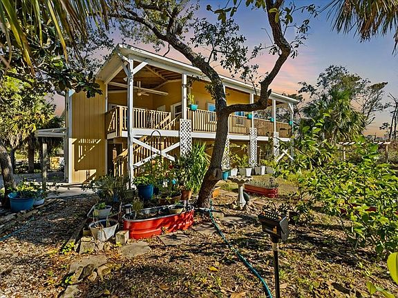 Incredible opportunity for a lovingly remodeled home with the biggest workshop on the island! High and dry home on a lovely half acre lot, this property did not see water in Hurricane Helene. In Flood Zone X, the lowest portion of house is at 17.5', which keeps your flood insurance to a minimal cost. The corner lot offers fruit trees and plenty of space for you to park your boat, RV, or grow a garden. The double bay workshop measures roughly 29'x42' and is the perfect spot to make that art studio you've always wanted plus room for a woodworker's dream, storage, or whatever you desire! Plus, the land the workshop is on is plenty big enough for separation to build another home, if you choose. In addition to that space, a wonderful two car garage is attached to the house, a rarity on the island. Downstairs you'll also find a perfect 1 bedroom / 1 bath apartment for guests, family use, or your own income producing vacation rental! Take the fully equipped elevator up to the second floor and enjoy water views from the spacious double sided deck--never miss the breeze and enjoy shade year round. Inside, this home has been meticulously remodeled with the highest quality finishes. Alder wood kitchen cabinets highlight an architect designed, storage-laden cook's dream! Stainless appliances, granite counters, and a divine extra large stainless modern farm sink highlight this exquisite space. Breakfast bar allows additional seating to the open dining space side, which flows perfectly into the airy living room. Pergo engineered wood floors glow underfoot and are throughout the house for continuity and ease of cleaning. So practical and so beautiful! The third bedroom in the main house is currently being used as an office but also has a private bathroom. You'll love the large walk in closet in the master, the impact windows with easy shutters all around, and the second outdoor dining space. So many amenities in this home and with a quality level rarely seen in remodels. You'll breathe easy knowing this house requires nothing from you--just move on in! Most furnishings are available separately, if you want to literally walk in the door and make yourself at home. This is not an ordinary home, you will be astonished by this hidden gem!
