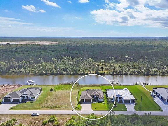 Stunning 2023 Waterfront Home with Gulf Access – No Bridges! Experience luxury coastal living in this stylish 2023 DMI- Palm Key II built waterfront home, perfectly situated on an oversized lot with direct Gulf access and no bridges. Enjoy breathtaking water views from nearly every room and relax in a peaceful, quiet neighborhood with an annual HOA of just $65 Step through elegant double front doors into an open-concept layout featuring 3 bedrooms, 2 baths, plus an office/den, dining area and a 3 car garage. Every detail has been thoughtfully designed — from 8-foot interior doors and crown molding in the main living areas to recessed lighting throughout the kitchen and hallways. The chef-inspired kitchen is a showstopper, boasting level 4 granite countertops, and has a massive island that would fit 6-8 chairs easily, ample cabinet storage, and a double pantry. The spacious living area showcases a coffered ceiling and zero-corner pocket (hurricab impact) sliders that open seamlessly to the lanai, creating the perfect indoor-outdoor flow. Retreat to the luxurious primary suite, complete with tray ceiling and rope lighting, LVP flooring, and a spa-like bathroom featuring a walk-in shower. A convenient pool bath offers direct access to the outdoor oasis. Outside, the oversized screened lanai overlooks a 12x24 saltwater pool with Pebble Tec finish, This large lanai area gives plenty of room for entertaining. The backyard is surrounded by a wrought iron fence to keep those fur babies safe and has lush St. Augustine grass. The yards full irrigation system draws from the canal for easy maintenance. Additional features include: • Hurricane-impact windows and doors • 3-dimensional shingle roof • Beautiful 12x24 tile flooring in all rooms except Master and Office/Den • Window shades in all bedrooms • Crown molding and recess lighting • Canal-fed irrigation system Enjoy the best of Florida living — peaceful, elegant, and ready for your boat! Soaring eagles, jumping fish, wild-life at your fingertips but close enough to all the things we’ve grown accustomed to. This beautiful home is centrally located between Sarasota and Fort Myers. Just minutes from gorgeous beaches and I75.
