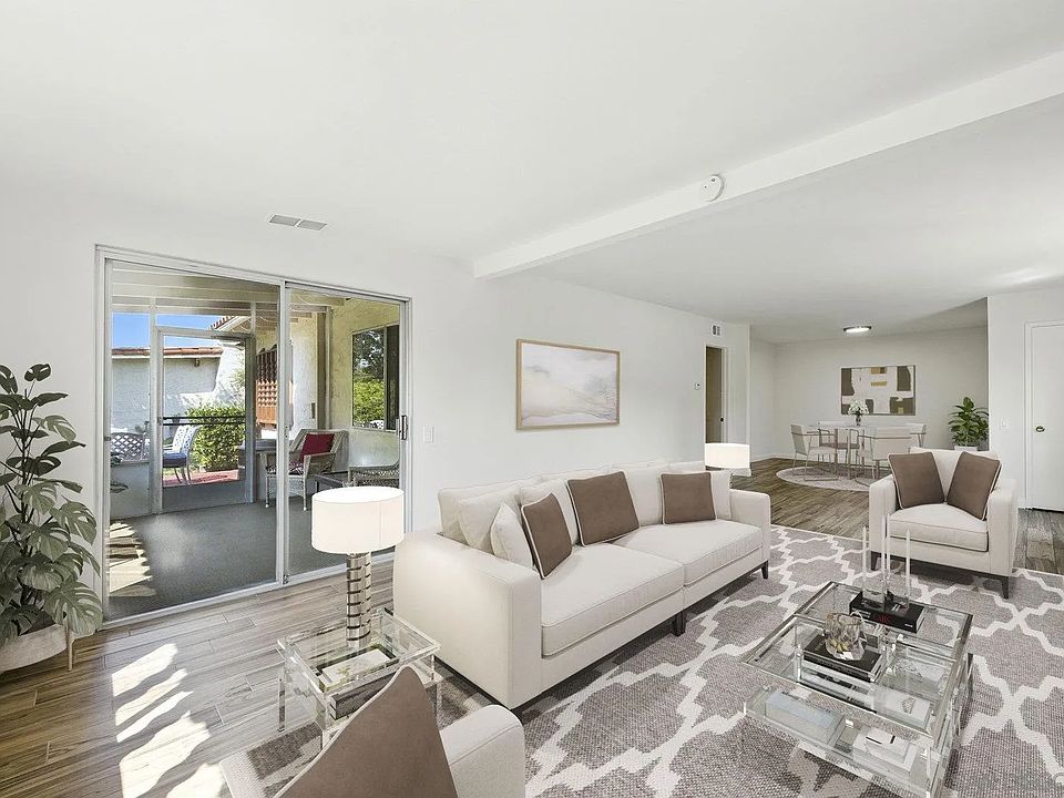 Welcome to a single-level condominium that offers thoughtful design, rare privacy, and everyday livability—tucked into one of the most peaceful locations in the sought-after 55+ Seven Oaks community. With NO shared walls and no neighboring residences to the front or sides, this home is ideally positioned at the front of a private, interior cul-de-sac, surrounded by mature trees in a tranquil, park-like setting. It feels set apart in its serenity, yet remains close and convenient to shopping, healthcare, and daily essentials. Recently refreshed, this 2-bedroom, 2-bath condo features smooth ceilings, fresh paint, updated flooring throughout and new roof. The kitchen includes all brand-new appliances and the interior laundry room fits full-size appliances—an often-overlooked luxury that adds convenience to daily living. The enclosed patio extends the living space, while an additional outdoor sitting area offers a spot to dine al fresco and enjoy San Diego’s sunshine. Covered parking and locked storage—spacious enough for bikes or even a golf cart—are conveniently located close to the condo. As a resident, enjoy access to the nearby Seven Oaks Community Center featuring pickleball courts, pool and spa, a fitness center, art rooms, and an active calendar of events. Whether you're social or serene, you'll find a lifestyle that fits your pace. Located near I-15, major shopping centers, golf courses, RB Winery and more —this low-maintenance condo offers lasting comfort and a warm sense of community in the heart of Rancho Bernardo.