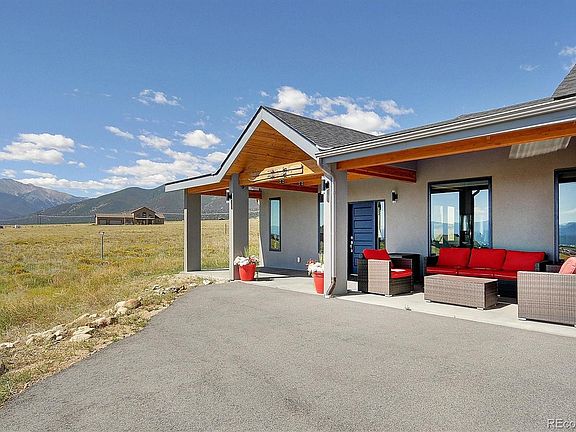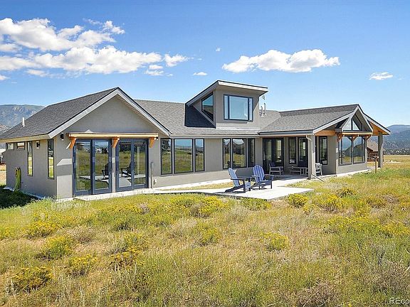Welcome to "ThreePeaks" an innovative, high efficiency, smart home perfectly situated to maximize solar benefits while framing captivating views of Mounts Princeton, Yale and Columbia. Thoughtful collaboration on architectural and engineering design results in open floorplan with light from two directions in every room, public to private gradient and inside to outside space transition. Every room of this one level home is creatively multi-purpose and allows for aging in place with extra wide doors and ramp from garage. Appreciate virtually no required maintenance with stucco exterior, concrete decks and aluminum wrapped soffits/facia. High quality construction features timber frame, ultra-insulated Structural Insulated Panels, solid interior doors, insulated interior walls for sound and HVAC zone control, triple pane Pella windows with ultrafine see through screens, Pella exterior doors and Energy Recovery Ventilator. Super efficient Mitsubishi HVAC Heat Pump system has 5 zones and provides heating and air conditioning for indoor comfort all year round. Spacious living area flows into upgraded kitchen offering granite countertops, coordinating Mt Princeton backsplash, stainless steel appliances, Bosch dishwasher, soft close drawers/cabinets and oversized island with expandable table that seats ten. Private primary bedroom has ensuite bath and adjacent office/guest room with Murphy bed and loft. Additional room currently used for workouts has Murphy bed plus loft office. Each of the 2 beetlekill pine ceilinged porches offer unique mountain views or you may opt for evening soaks and stargazing by installing a hot tub on the existing concrete pad with underground electric and GFI. Oversized 2-car garage is heated/air conditioned with 8' doors that accommodate most 4WD trucks. Smart home features include shades, fans, lights, heating/AC, washer/dryer and stove all tied into WIFI with the ability to monitor remotely or operate manually. Available for private showings.