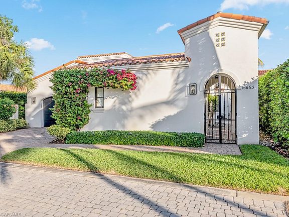 Located in the beautiful Mediterra Golf & Country Club - NEWLY RENOVATED PRIVATE BEACH CLUB - truly captivating home from London Bay, reminiscent of the finest Spanish-style Italian homes. This luxurious abode greets you through a private courtyard entry leading into French doors that open to the beautiful foyer accented with stone masonry. The spacious family room, highlighted by brilliant stone floors and rich wood beam ceilings, as well as a cozy fireplace, pocketing glass sliders, and automatic lanai screens, allows for a seamless flow between the indoors and out. The chef-quality kitchen is remarkable, with the most dazzling marble countertops, oversized center island, Walk-in pantry, expanded cabinetry, premium La Cornue Chateau Gas Range, SubZero refrigerator, built-in pizza oven, and even a refrigerated Wine room & bar adjacent to the kitchen. Additionally, this home features impact windows and doors that add peace of mind. Entertaining is a delight with a full home theatre room, complete with a separate movie lobby equipped with a wet bar and powder bath. There’s also a serene home office space with lots of natural light through lovely French doors. The primary suite is indulgent, with large windows, tall tray ceilings, a walk-in shower, a separate tub, dual vanities, and a walk-in closet. Guests are always comfortable with a downstairs or upstairs suite available. For those who enjoy the outdoors, this home is full of excellent options, from the pool courtyard with fire bowls and water features to the covered loggia with a built-in summer kitchen featuring a Hestan Grill and a fireplace with dining and living areas. Step beyond the lanai to the awe-inspiring backyard with a phenomenal view of the fountain lake view, and neighborhood garden park beyond. Friends and family will be delighted with spacious seating around the fire pit; there’s even a fenced lawn for young children or pets! Mediterra is a prestigious luxury golf & country club community featuring Two championship Tom-Fazio golf courses for avid golfers, a private beach club with restaurant & bar, multiple tennis courts, pickle-ball & bocce, fitness center, pristine bike & jogging trails, and luxurious dining at the private country club restaurant. The Mediterra Beach Club offers an escape to a 10,000 sq. ft two-story private oceanfront paradise on the Gulf of Mexico. Featuring a restaurant & bar that serves members via indoor & outdoor dining, this private facility boasts a heated swimming pool, a sundeck, and cabana beach service for chairs, umbrellas & refreshments.