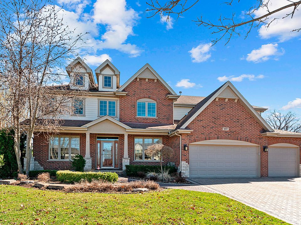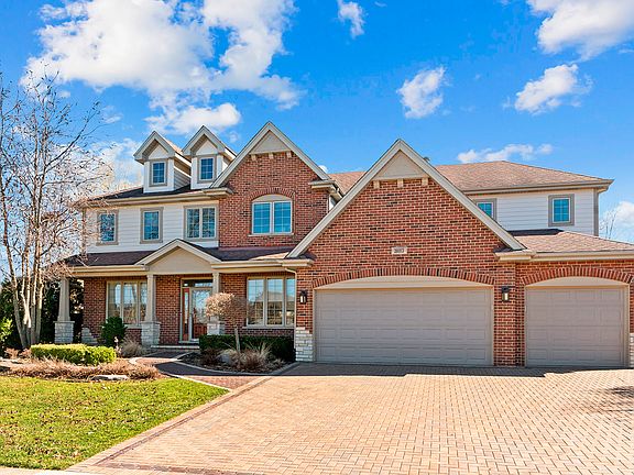 Beautiful Creekside Estates South of Lockport is known for its quality homes, but this one is clearly Best in Show! Boasting over 5,800 square feet of WOW, spanning 3 finished levels, including 5 bedrooms and 4 full baths, 3 recently renovated. A home so spectacular it merits multiple pages of builder options. Custom white millwork, arched doorways, hardwood floors and designer ceilings, everything you'd expect in a home of this magnitude. SMART home too, with automated lighting, security cameras, expanded WIFI capabilities and wireless AV system. Expansive paver driveway to 3-car garage with universal EV car charger (50 AMP) and camera/remote control door openers. Welcoming front porch ushers you into the stunning 2 story foyer. Formal dining room with butler pantry leads to the amazing kitchen with upgraded cabinetry, granite countertops, island with seating, walk-in pantry, and upscale stainless appliances, including a double oven. The soaring 2-story family room offers oversized windows for plenty of light, a fireplace and overlooking bridge. Main level also has a mudroom, bedroom, full bath and a den with built-ins that will have you begging to work from home. Oak Y staircase to the upper-level primary suite with tray ceiling and sitting room. Updated luxury bath with walk-in shower, double vanity, skylight, and dual closets. 3 additional bedrooms, new bath, and laundry room with new washer/dryer. The finished basement offers a large recreation room with AV capabilities, game area, exercise room, office and a full bath. Gorgeous indoors, but step outside to your true paradise! Fabulous place to entertain on the heated covered patio with television, WIFI, and fireplace. Knee wall for additional seating and remote screens for bug free evenings. Barn door access reveals built-ins and buffet area. Whatever the game, you're clearly the winner with your own private sport court!! The victories can be celebrated in the new hot tub. All set-in a sought-after area, with great schools and close to expressways, shopping, and stores.