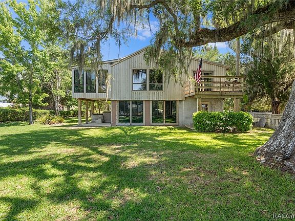 Charming waterfront home with an Old Florida feel and direct access to the Gulf. Ideal for a weekend getaway, vacation rental or full-time residence. Affectionately known as “The River Treehouse”, this beauty is tucked away on the Withlacoochee River with 97 feet of waterfront, on deep sailboat water just a few miles upstream of the gulf for your fishing and boating adventures Built in 1985, the home has been expanded to 2-bedrooms/ 2-baths. The unique cedar home was built with “post and beam” construction with wood peg framing; pecky cypress and pine interior siding, soaring beams and custom cabinetry. The main floor encompasses gorgeous river views from three sides. The kitchen bar overlooks the family room and is fully equipped, including a gas range. A gracious live oak completes the view with relaxation encouraged by settling into the sunroom with a book or out on your breezy deck. Winters should be spent curled up by the freestanding fireplace (wood burning but gas convertible) watching for bald eagles, turkey, manatee, or dolphin. The large primary bedroom, walk in closet and bathroom are also located on the upper level. Back downstairs, take in the large multi-purpose suite used as the second bedroom with a built-in queen murphy bed, over-sized walk-in closet and full bathroom. The space doubles as an entertainment hub for fun and games, with a built-in wet bar and a movie projector system ready for a night in. The home has been a primary residence for many years has been lovingly cared for. Home also contains a workshop, full inside laundry room and tons of storage. A fixed and floating dock occupy the waterfront, equipped with electric and water plus an irrigation pump for your sprinkler system. Full house water softener and a separate soft water spigot for washing your car and windows. Covered parking under the home and a shed for all your gardening needs complete this home. Easy access to Gainesville, Ocala, Tampa, Orlando, Crystal River and the Suncoast Parkway. Call today for your private showing!