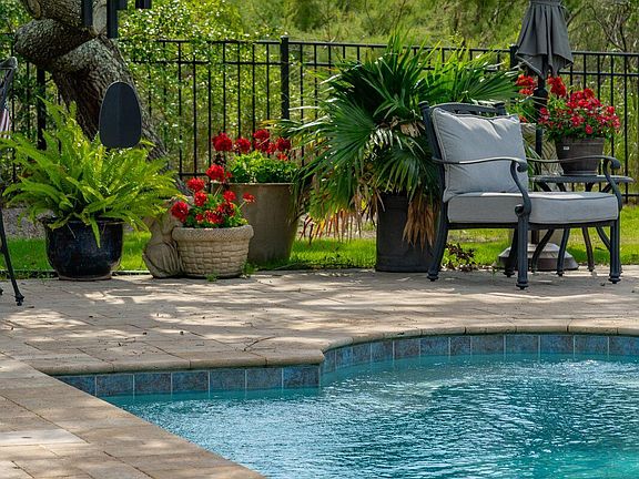 Garage ductworkRail-fenced poolNew drive-on floating dockLush landscapingHvac systemsCircular driveMarble baths