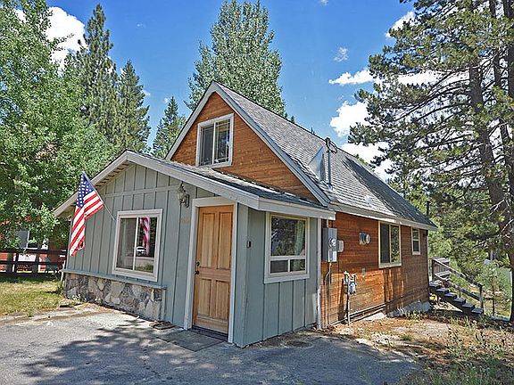 This beautiful Tahoe cabin is being offered for sale fully furnished and ready to enjoy. Some of the exterior improvements include cedar siding, dual pane vinyl windows, and a newer composition roof. The interior features granite counters, custom cabinetry, hardwood floors, knotty pine paneling, and a remodeled bathroom. A very large sunny back deck provides the perfect place to enjoy a summer afternoon. The adjacent lot to the right is owned by the US forest service providing additional privacy. The downstairs floor plan consists of a large entry mudroom, a spacious living room with adjacent kitchen and dining room, a full bathroom and bedroom. Upstairs, the second bedroom is configured as huge loft which could potentially be divided into two separate bedrooms. Located in the county area of South Lake Tahoe, this home represents one of the best values on the market today!