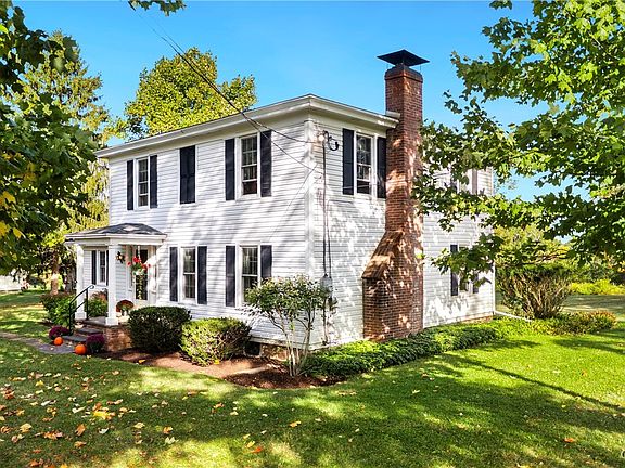 This charming white farmhouse sits on a spacious, private lot with lovely views. The home features four bedrooms and two full bathrooms with beautiful wood floors and lots of character. A welcoming back deck is perfect for relaxing and enjoying the peaceful surroundings. Inside, you'll find both a cozy living room with a wood-burning fireplace and a separate family room, along with an eat-in kitchen and formal dining room. The home has been thoughtfully updated throughout, including an updated kitchen and bathrooms. Recent improvements include a new roof, updated heating system, energy-efficient windows, upgraded electrical service, and a new garage door. The property offers plenty of practical amenities with an attached two-car garage, additional storage shed, and ample driveway parking. Located in the award-winning Skaneateles School District, this country retreat is just two miles from the charming village of Skaneateles, offering the perfect blend of rural tranquility and convenient access to local amenities.