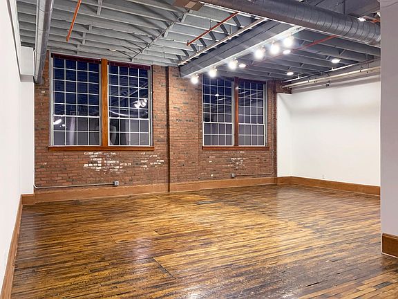 Suite 2B is a 1,064 sq. ft. studio located on the second floor. It has beautifully preserved 100+ year old hardwood floors, exposed brick walls, 12 ft. ceilings, and large windows with northern exposure. This suite underwent a mild renovation four years ago that included installation of a new stainless steel stove/oven, stainless refrigerator/freezer, digital thermostat, new electrical outlets, switches and plate covers, fresh paint throughout, refinished window sills, serviced furnace, and other assorted odds and ends. The hot water tank was replaced six years ago.