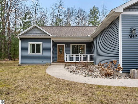 Discover serenity in this meticulously maintained home, nestled within a family-friendly neighborhood, where comfort, functionality, and spaciousness converge to cater to everyone's needs. Step inside to discover an inviting open floor plan that seamlessly connects the living, dining, and kitchen areas. The island kitchen, a focal point of the home, beckons both chefs and entertainers alike with its ample space for creating delicious meals and hosting gatherings. Granite countertops throughout add a touch of elegance and durability to the space. This home is designed with convenience in mind. A mudroom and main level laundry make daily chores a breeze, while the large unfinished space in the lower level presents endless possibilities for customization to suit your needs and preferences. Situated on a spacious 1-acre lot, outdoor enthusiasts are sure to like the oversized yard, perfect for play, relaxation, and entertaining. Enjoy bonfires under the stars, host summer barbecues on the spacious patio, or tend a garden to grow your own fresh vegetables. Mature hardwoods and evergreens border the property providing privacy. An outdoor garden shed provides an ideal place to store your lawn equipment, tools, and smaller outdoor toys. Situated just outside of Interlochen, you don't have to travel far for groceries, to enjoy dining out, or to catch a performance at the Interlochen Arts Academy. Traverse City is just under a 30 minute commute, ideal for work, business, or pleasure. There is much to appreciate about this lovely home. Come see, and begin dreaming of how you can make it your own.