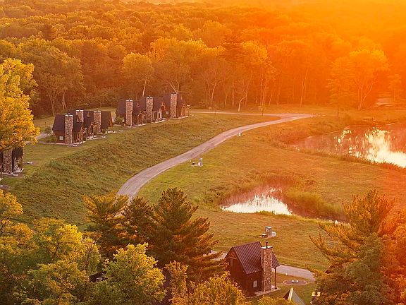 Nestled on 170+/- acres of lakes and timber in Knox County Illinois, near the Oak Run Lake community. Dragonfly Lakes is an exclusive luxury resort designed for rustic charm connected to nature with luxury appointments. The 20 timberframe cabins are fully furnished with highspeed internet and overlook 1 of the large stocked lakes. The cabins are fully furnished and equipped with a woodburning fireplace and an outdoor fire pit. The acreage has 2 large lakes with multiple smaller lakes offering easy expansion for additional cabins and the center strip below the 20 cabins has the perfect spot for a wedding venue. Water and high-speed internet have been brought into the development with public sewer being discussed. Theres a custom timberframe style gate house greeting guests that could be used for laundry and retail/fishing equipment Each lake has Kayaks available and there are miles of hiking trails thru the timber. The development is adjoining OakRun Resort which is vacation area destination with a 600-acre lake and an 18-hole golf course. Dragonfly Lakes is the perfect addition to the area offering a wedding site with luxury accommodations and perfect for housing guests of local residents.