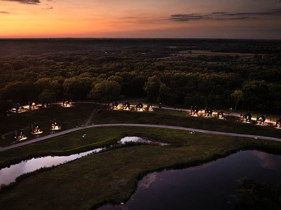 Nestled on 170+/- acres of lakes and timber in Knox County Illinois, near the Oak Run Lake community. Dragonfly Lakes is an exclusive luxury resort designed for rustic charm connected to nature with luxury appointments. The 20 timberframe cabins are fully furnished with highspeed internet and overlook 1 of the large stocked lakes. The cabins are fully furnished and equipped with a woodburning fireplace and an outdoor fire pit.