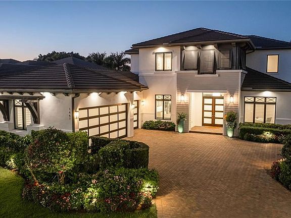 Resort-Style Luxury in The Landings at Bears Paw, Stunning- 4 Bedroom plus Den, 5 1/2 Bath, Custom Home with Gulf Access. Welcome to The Landings at Bears Paw, Naples hidden gem tucked between the Gordan River, Greenway Park, and the Jack Nicklaus Signature Bears Paw Golf Course. This stunning 2019-built custom two-story home by MHK Architect & Planning has impeccable finishes and details. Designed for entertaining and Florida living at its best, the home boasts a Gourmet Kitchen, with Thermador Appliances, Custom Cabinetry, Enlarge Island & Pantry. Three bedrooms are all-in suite, providing privacy and luxury for family and guests. The media room ia a showpiece with custom cabinetry, granite counters, and refrigator drawers-perfect for movie nights, or hosting friends. Step outside and enjoy your golf course views right from your expansive 1900 sf lanai, featuring a custom fireplace, fully equipped outdoor kitchen, resort-style pool with fire bowls and fire table, perfect for sunset cocktails or weekend gatherings. Plus, your private dock with boat slip offers direct access to the Gulf, for endless adventures. Every detail has been thoughtfully curated for both function and flair, from spacious living areas to light filled interiors and elegant finishes throughout. This home combines recreation, relaxation, and luxury into one perfect package.