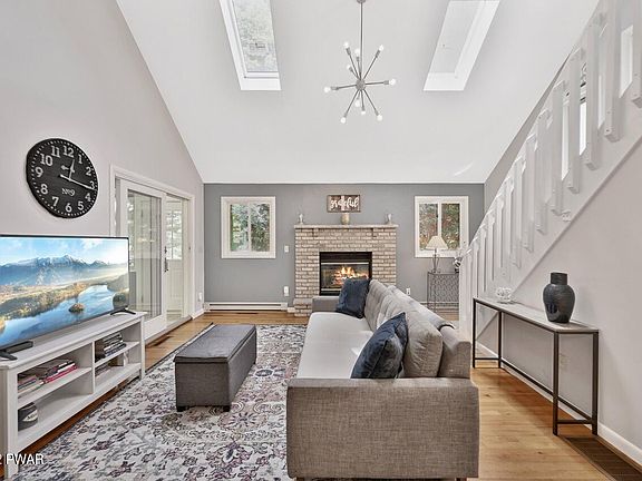 Fully furnished, beautifully updated home in a four-season amenity filled community in The Northern Poconos, just 2 hours from the NY, NJ and Philadelphia Areas. Located on a nice level lot with an inviting backyard. This 3 bedroom, 2 bath home has three finished levels. There's a large sunroom with vaulted ceilings and split unit with heat and A/C, access to the wraparound deck. Central heating with heat pump, Central A/C and three split units. The kitchen has been updated with quartz counter tops, and is open to the main living area with fireplace and high ceilings. The finished lower level has a large recreation room equipped with fun!, Beds Description: 2+BED 2nd, Beds Description: 1Bed1st, Baths: 1 Bath Level 1, Baths: 1 Bath Level 2, Eating Area: Dining Area
