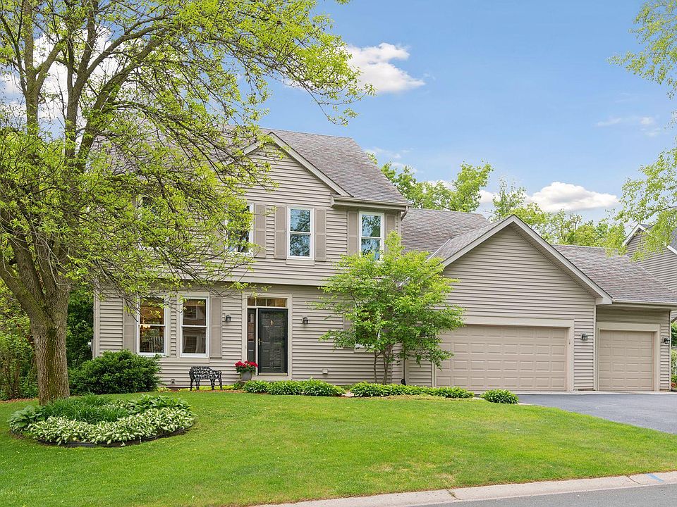 Beautiful 4 BR, 3 car, two story home in the Fairfield neighborhood, which is nestled amongst all of the amenities of Eden Prairie, including parks, trails, dining, shopping and Eden Prairie Schools.This home features an open floorplan on the main level with a large well-appointed kitchen including new quartz counter tops, freshly refinished cabinets, large center island and updated appliances.The family room features vaulted ceilings, wood burning fireplace, natural light from the windows and slider which leads to a large deck with stairs overlooking the stunning backyard.An elegant formal dining room, living room and half bath complete the main level.The upper level features 4 bedrooms including a large primary with updated ensuite and updated 2nd bath. Walkout lower level features a large family room with gas stove, amusement room, office, workshop with work bench and ¾ bath. Home has new carpet and new paint throughout. Large private back yard backing up to wooded area.