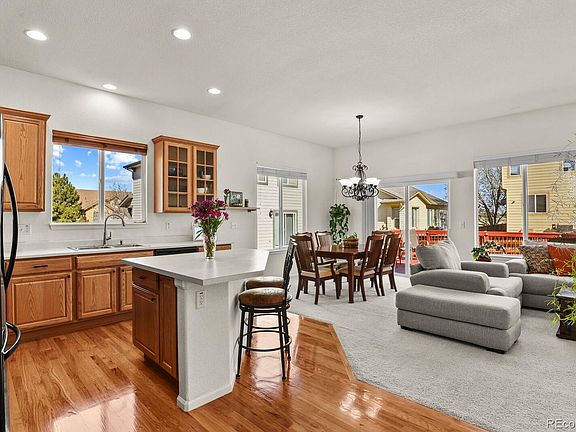 Nestled in the charming Reunion community this 3 bed/2 bath ranch style home is open and bright making it perfect for entertaining or just relaxing at home. Primary bedroom has his and hers closets, on of them a walk in. Beautiful hard wood floors, open concept, freshly cleaned carpet and windows, it's ready for you! The basement is unfinished giving lots of possibilities to expand. The exterior home and deck have both been freshly painted. Convenient location offers access to trails, playgrounds and lakes. The neighborhood features a clubhouse complete with fitness center, basketball court and outdoor pool. There is a quaint little coffee shop located .9 miles from the home. Schedule your showings asap as this little gem won't last long!